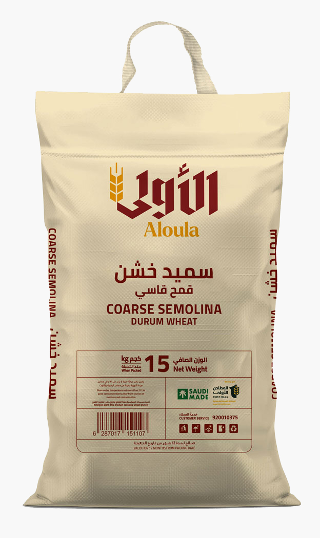 Aloula Coarse Semolina is produced from the finest durum wheat. It's ground using advanced technology, offering the perfect grain texture for preparing Eastern cuisine and traditional sweets.